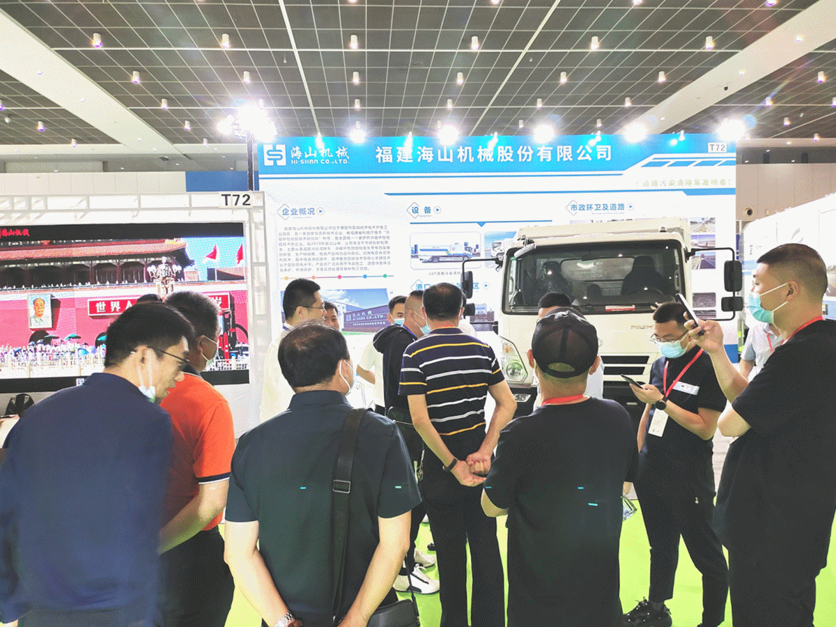 在此展會上,海山機(jī)械的參展產(chǎn)品為18噸道路污染清除車和7噸道路污染清除車。其中,7噸道路污染清除車作為當(dāng)前道路污染清除車市場最小噸位的車型,在其下線之前,就受到多方客戶關(guān)注,在此展會上毫不意外地受到客戶追捧。