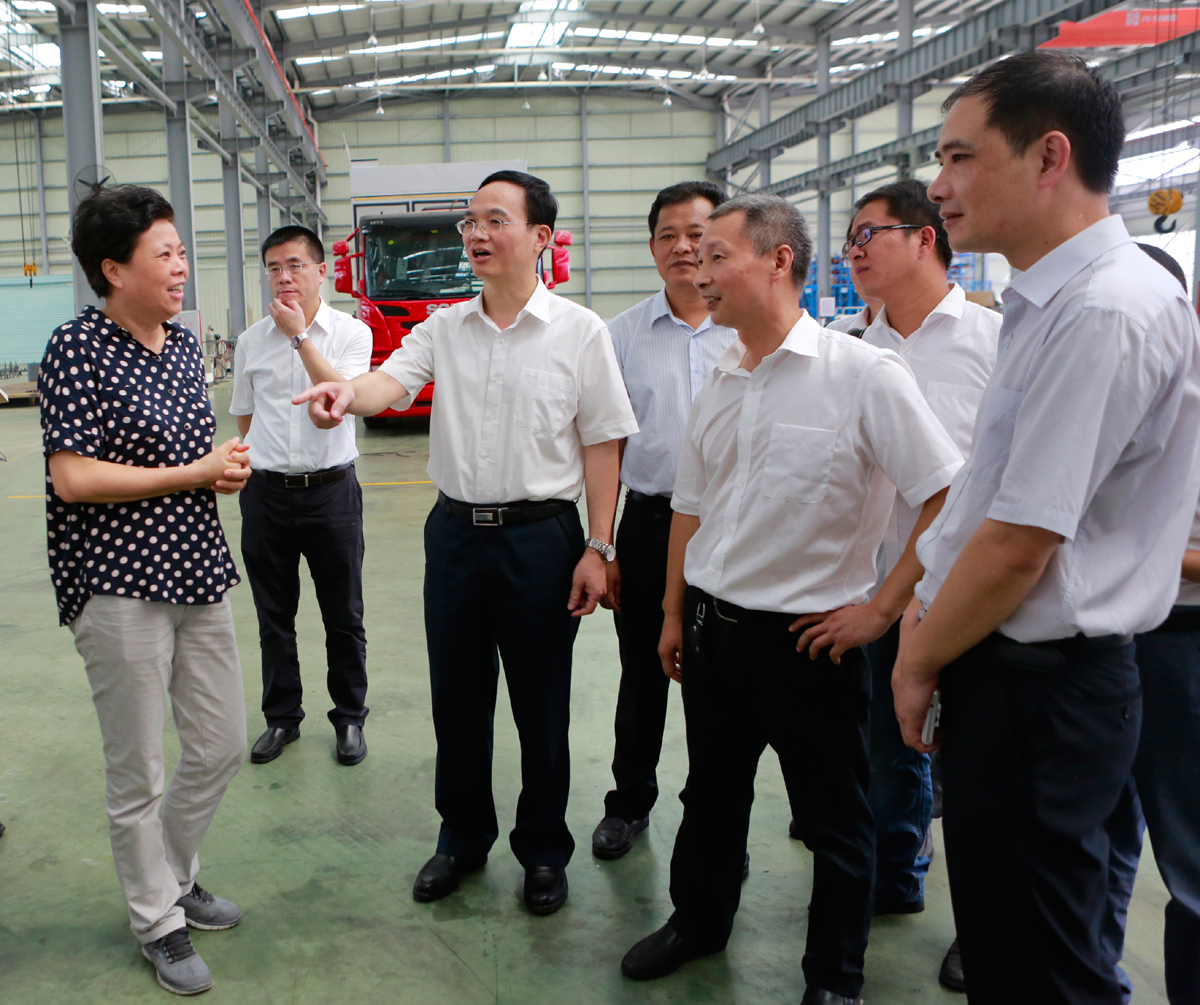 Inside the assembly workshop Lin Aipin pointed to a? newly-coated silver-gray vehicle and said,this is Hishan road pollution removal vehicle. Lin Baojin inquired about the functions and sales of the vehicle.When he learned the excellent performance of this type of vehicle and its huge market potential,, he said he can offer Hishan a new marketing strategy. President Lin Aipin said Hishan would be happy to take a look at the ideas.