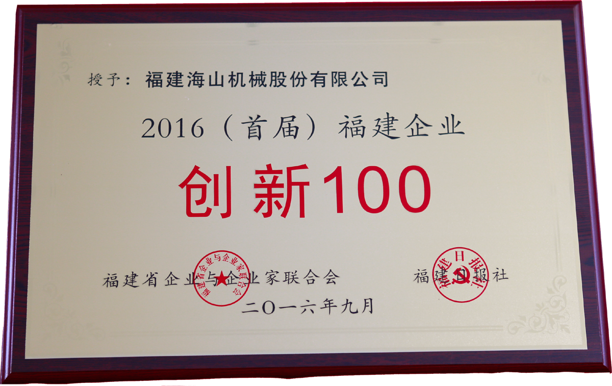2016(首屆)福建企業(yè)“創(chuàng)新100”名單頒發(fā) 海山機(jī)械上榜