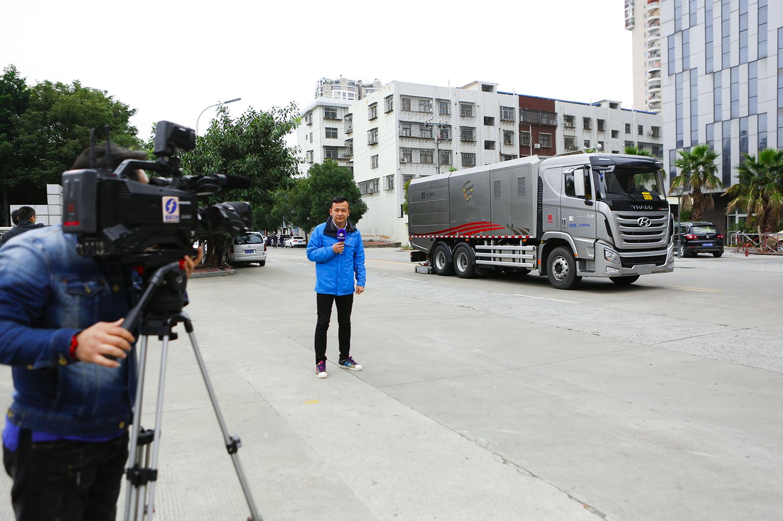 海山機(jī)械研制國內(nèi)首臺污染清除車吸引東南衛(wèi)視采訪