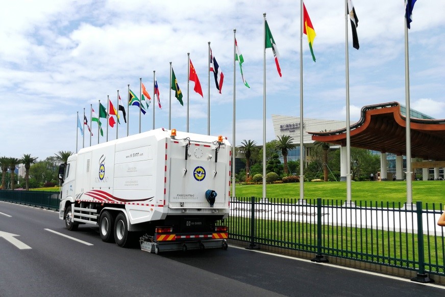 廈門市環(huán)衛(wèi)為了以最好的城市面貌迎接金磚峰會,從福建海山機(jī)械股份有限公司采購了代表當(dāng)今道路深度清潔世界先進(jìn)水平的重器–重型道路污染清除車,以滿足高標(biāo)準(zhǔn)會場以及核心區(qū)域的地面環(huán)境要求,使廈門以更加靚麗的姿態(tài)迎接來自世界各地的金磚貴賓。