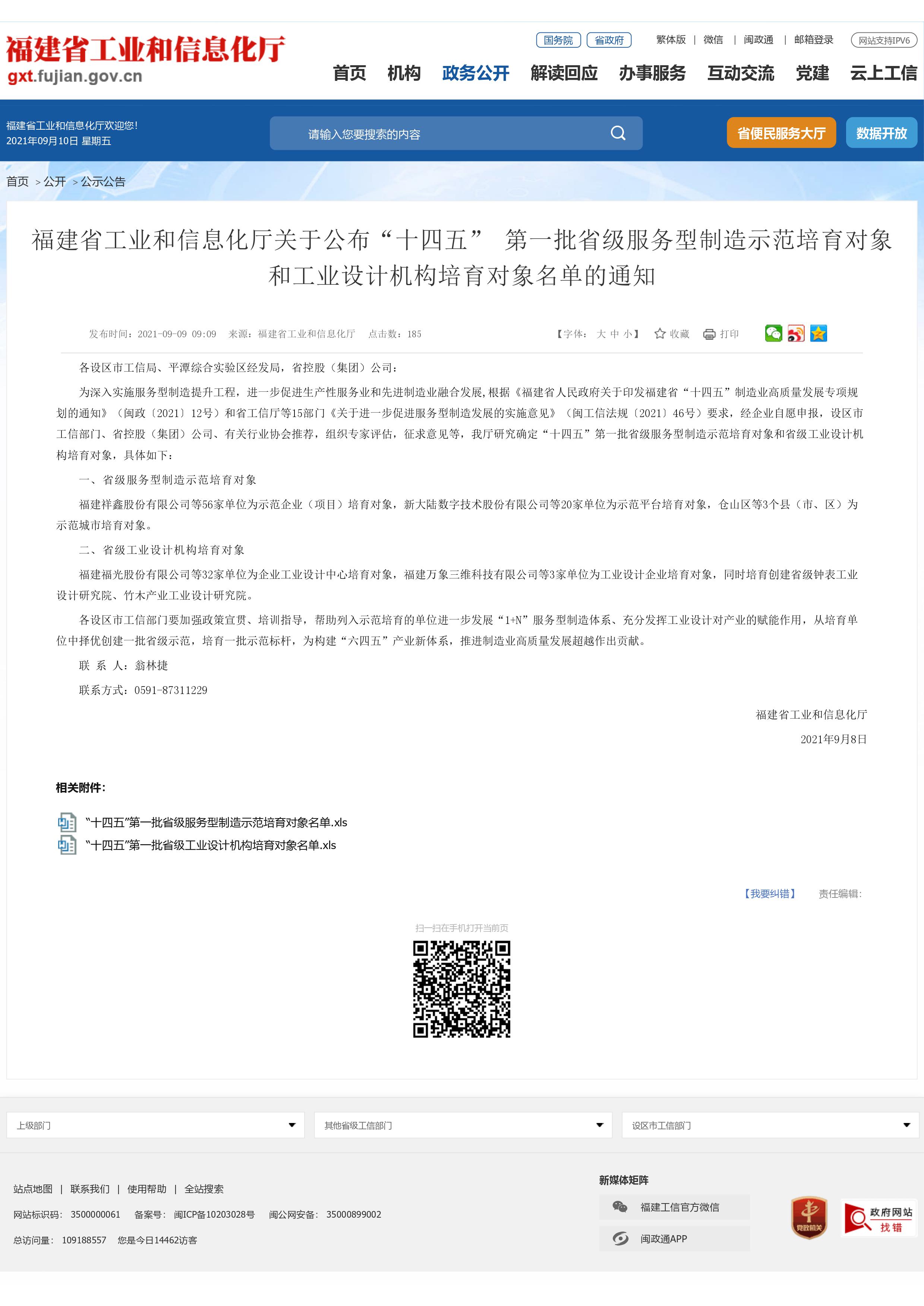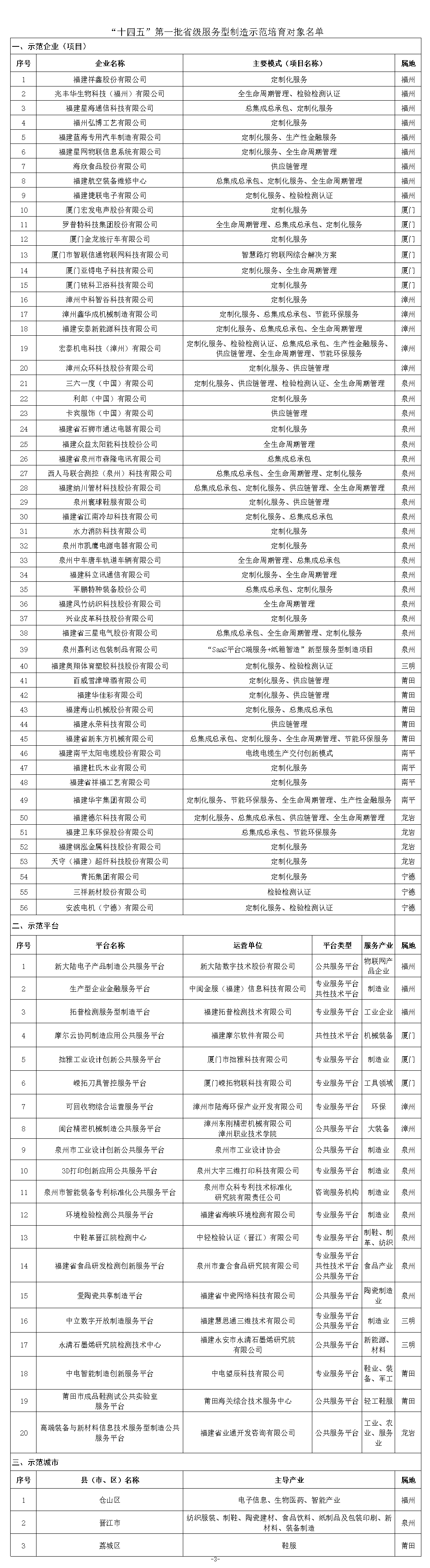 福建省工業(yè)和信息化廳關(guān)于公布“十四五” 第一批省級(jí)服務(wù)型制造示范培育對象和工業(yè)設(shè)計(jì)機(jī)構(gòu)培育對象名單的通知