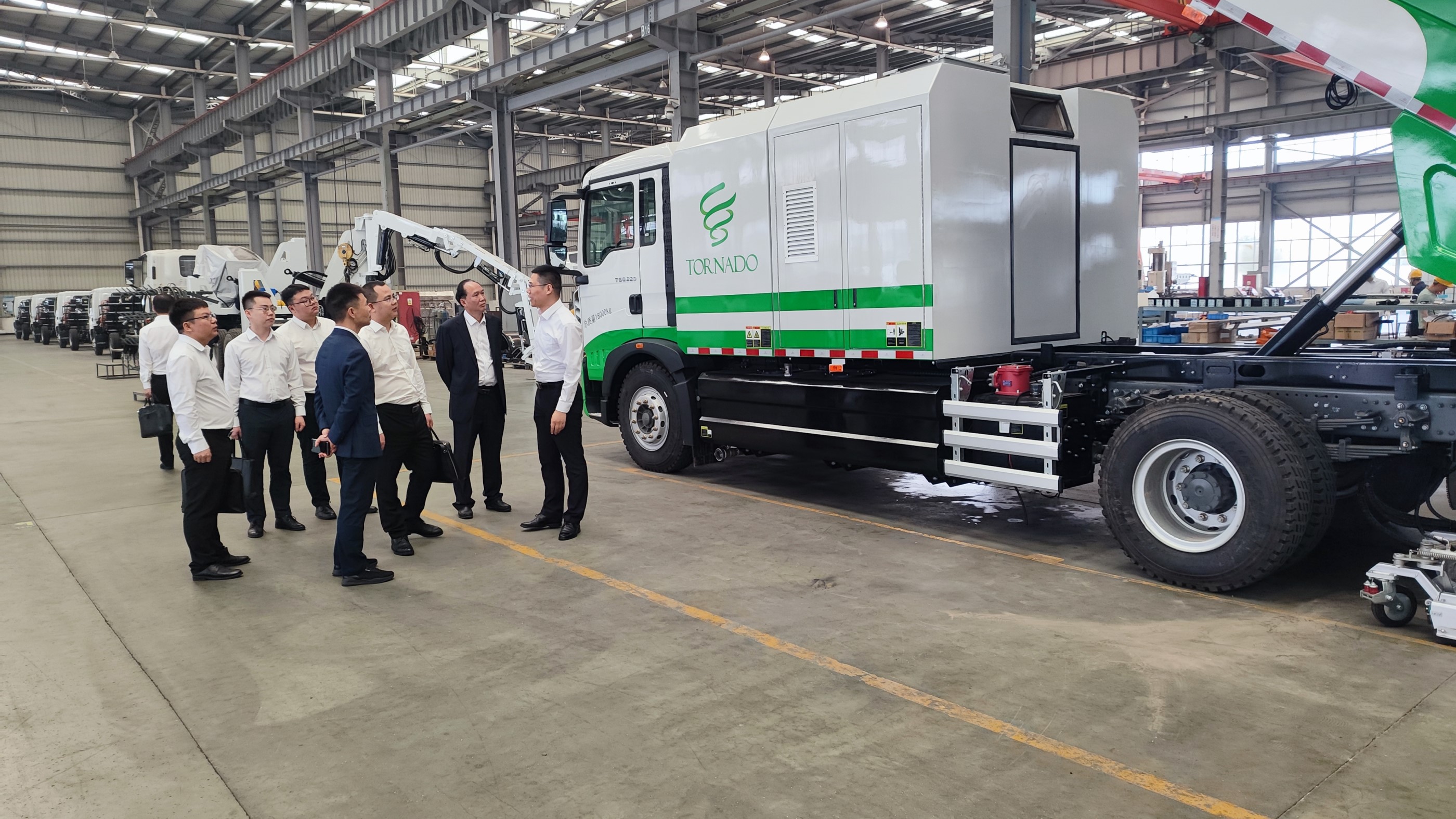 4月12日,北控城市環(huán)境服務(wù)集團(tuán)有限公司(以下簡稱“北控城市服務(wù)”)董事長趙克喜、總裁助理兼華南區(qū)域總經(jīng)理甘勝平、華南區(qū)域執(zhí)行總經(jīng)理李真一行蒞領(lǐng)海山機(jī)械考察交流。海山機(jī)械董事長林愛萍、總經(jīng)理閆炳雷等公司領(lǐng)導(dǎo)陪同趙克喜董事長一行參觀了公司成果展示及生產(chǎn)車間,觀看了道路污染清除車和挖掘抽吸車現(xiàn)場演示,趙克喜董事長對海山機(jī)械的產(chǎn)品功能、應(yīng)用場景及作業(yè)效果給予了高度評價(jià)。
